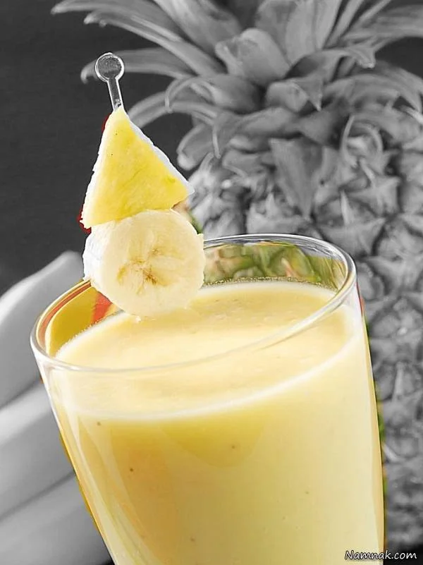 اسموتی وانیلی موز و آناناس یک نوشیدنی بسیار ساده است که می توانید طرز تهیه آن را درآشپزخانه نمناک مشاهده نمایید.