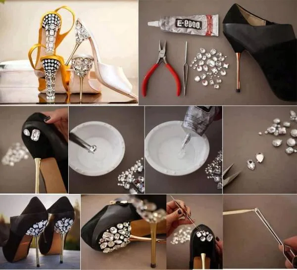 اگر شما هم کفش مجلسی پاشنه بلند مشکی رنگ و ساده ای دارید که دیگر تکراری شده و از پوشیدن آن خسته شده اید بد نیست با ایجاد تغییراتی آسان آن را به کفشی جدید و متفاوت تبدیل کنید. تزیین کفش یکی از کارهای ساده ای است که همه خانم ها میتوانند به راحتی در خانه انجام دهند، برای تزیین کفش میتوانید از نگین های ریز و درشت استفاده کنید.