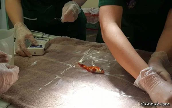 آنها برای درمان ماهی خود به یک دامپزشک متخصص مراجعه کردند و قرار بر این شد که آن دکتر ماهی را عمل جراحی کند.