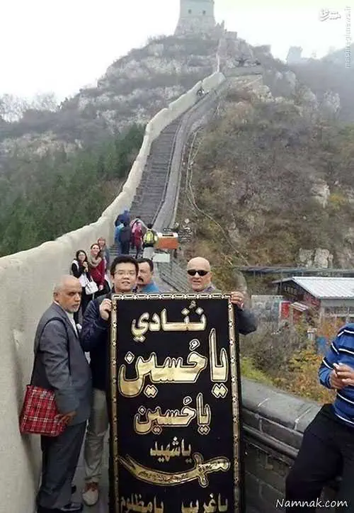 تعدادی از شیعیان اهل بیت(ع) که در ایام محرم الحرام در کشور چین به سر می بردند همزمان با روز عاشورا، پرچم مشکی عزای ابی عبدالله الحسین(ع) را بر فراز دیوار چین به اهتزاز درآودند.