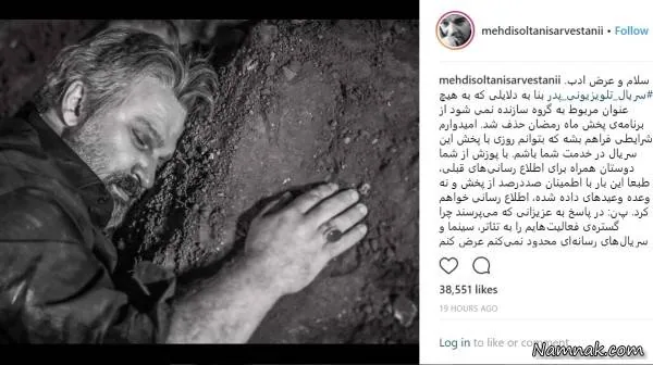 مهدی سلطانی بازیگر سریال پدر با انتشار پستی در اینستاگرامش درباره علت پخش نشدن سریال پدر در ماه رمضان توضیح داد.