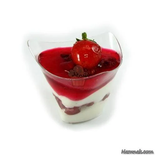بعد از آماده شدن دسر روی آن را با برش هایی از توت فرنگی تزیین کرده و میل کنید.