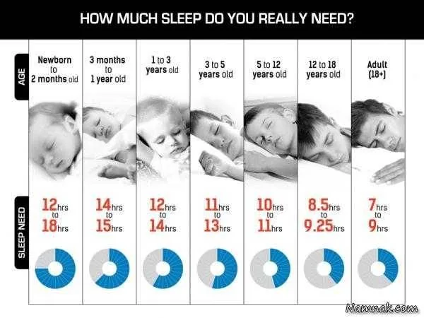 میزان خواب | میزان خواب مرود نیاز یدن در سنین نوزادی تا پیری