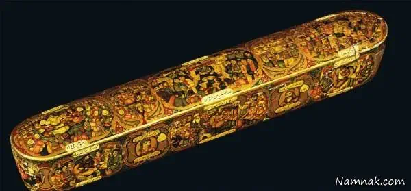 نخستین قلمدان نگاری به سال 1106هـ.ق و با رقم ” یا صاحب الزمان” از محمد زمان ، محفوظ در موزه ارمیتاژ سن پطرزبورگ شناخته شده است.