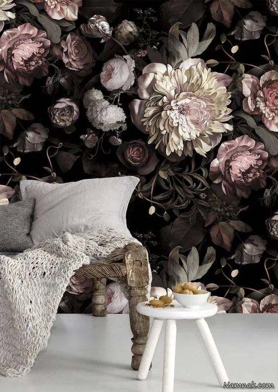کاغذ دیواری های گلدار که زمینه تیره دارند برای فضاهایی که نور کافی دارند مناسب است, اگر منزل تان تاریک و کم نور است کاغذ دیواری هایی با زمینه روشن انتخاب کنید.
