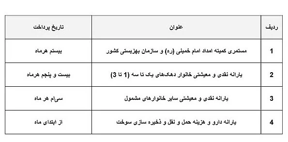 بنابر اطلاعیه ای که سازمان هدفمندسازی یارانه ها منتشر کرد جهت نظم بخشیدن به پرداخت یارانه ها و مستمری های مشمول قانون هدفمندسای یارانه ها از بهمن ماه 1402 پرداخت های این سازمان بر اساس جدول جدید انجام می شود.