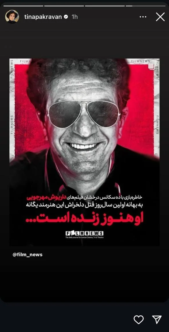 فیلم هایی چون گاو،دایره مینا،اجاره نشین ها،هامون،بانو،مهمان مامان،سنتوری و... که دارای سکانس های درخشان بوده و با گذشت زمان نه قدیمی و تکراری میشوند و نه از ذهنهایمان بیرون میروند. بازیگرانی چون الهام اخوان، شبنم مقدمی، پردیس احمدیه، تینا پاکروان و... به مناسبت سالگرد داریوش مهرجویی و همسرش استوری هایی را منتشر نمودند که در ادامه این بخش از نمناک مشاهده می کنید.