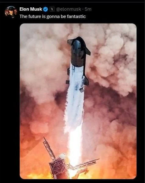 ایلان ماسک عکسی از لحظه پرتاب موشک استارشیپ را منتشر نمود و به استقبال پیروزی ترامپ رفت و نوشت: