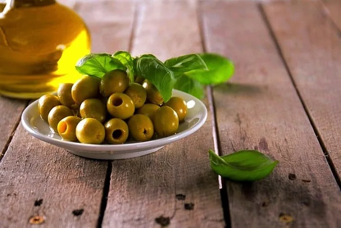- در یک ظرف چند هسته زیتون بریزید.