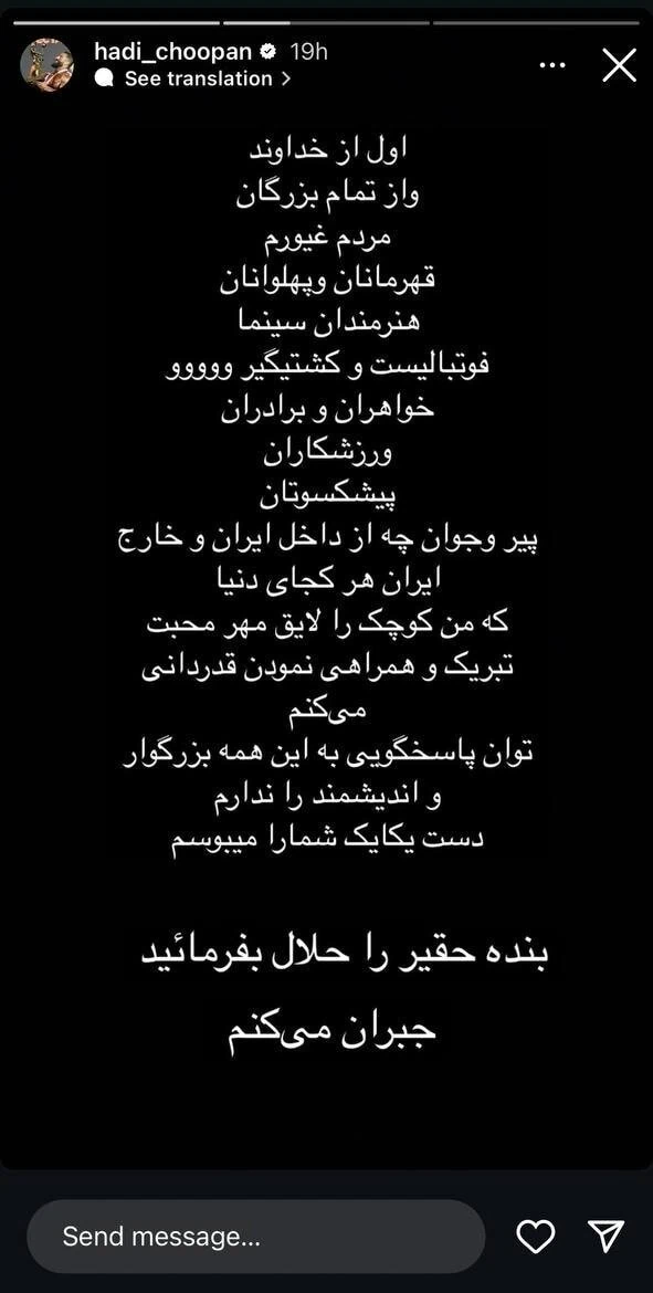 استوری معنادار هادی چوپان بعد مستر المپیا 2024