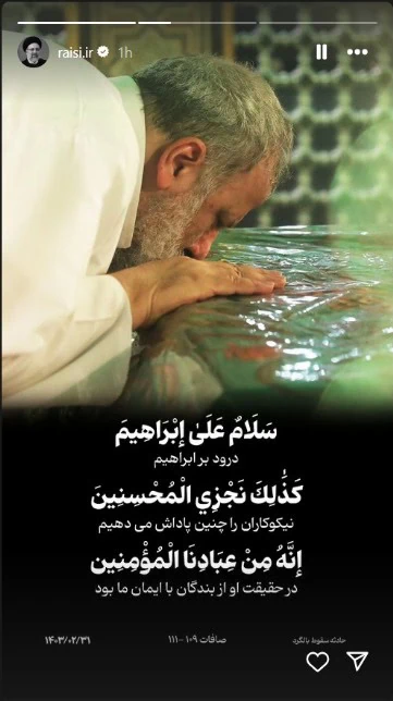 عکس جدید اینستاگرام رئیس جمهور رئیسی پس از شهادتش