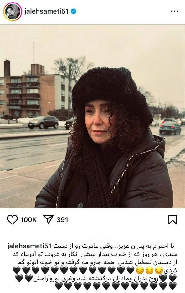 ژاله صامتی، بازیگر سینما و تلویزیون که دی ماه امسال در غم از دست دادن مادرش، کتایون منوچهری، به سوگ نشست، اینستاگرام خود را با یک پست احساسی به روز کرد.
