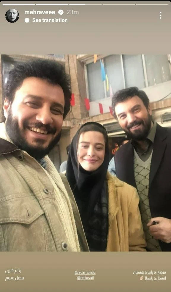 سلفی مهراوه شریفی نیا با جواد عزتی و کامبیز دیرباز در فصل سوم زخم کاری بود. مهراوه شریفی نیا در زخم کاری نقش پانته آ، جواد عزتی نقش مالک و کامبیز دیزباز ایفا کننده نقش طلوعی بود.