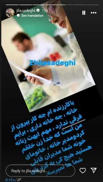ژیلا صادقی مجری جنجالی تلویزیون استوری هایی پرانرژی برای خانم های ایرانی را در صفحه شخصی خود به اشتراک گذاشت.