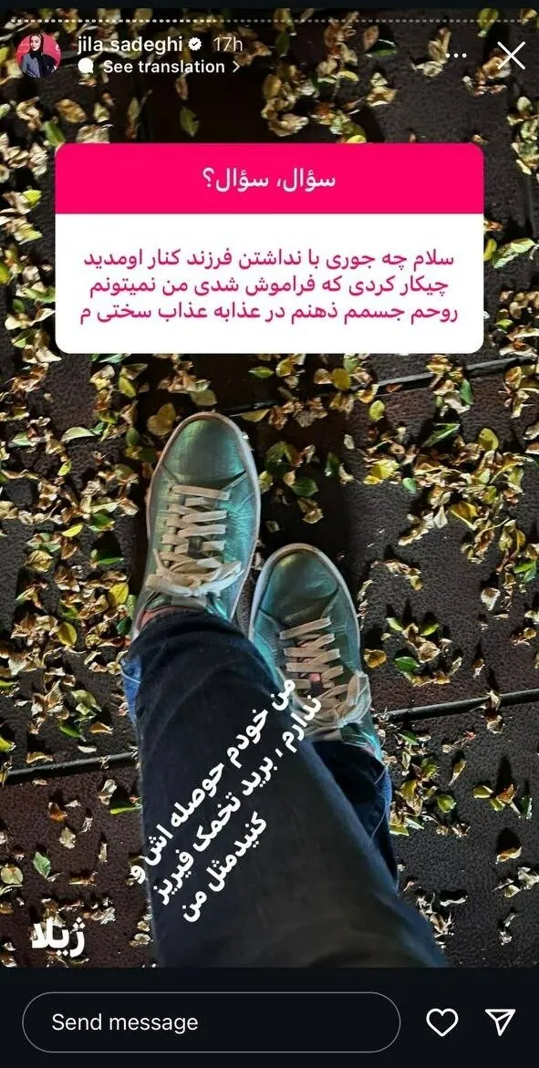 ژیلا صادقی بازیگر و مجری تلویزیون در استوری های اینستاگرامش پاسخ دنبال کنندگان خود را داد. برخی از کاربران از او درباره ازدواج و مادرشدنش سوال کرده بودند که خانم مجری پاسخ غیر منتظره ای را عنوان کرد.