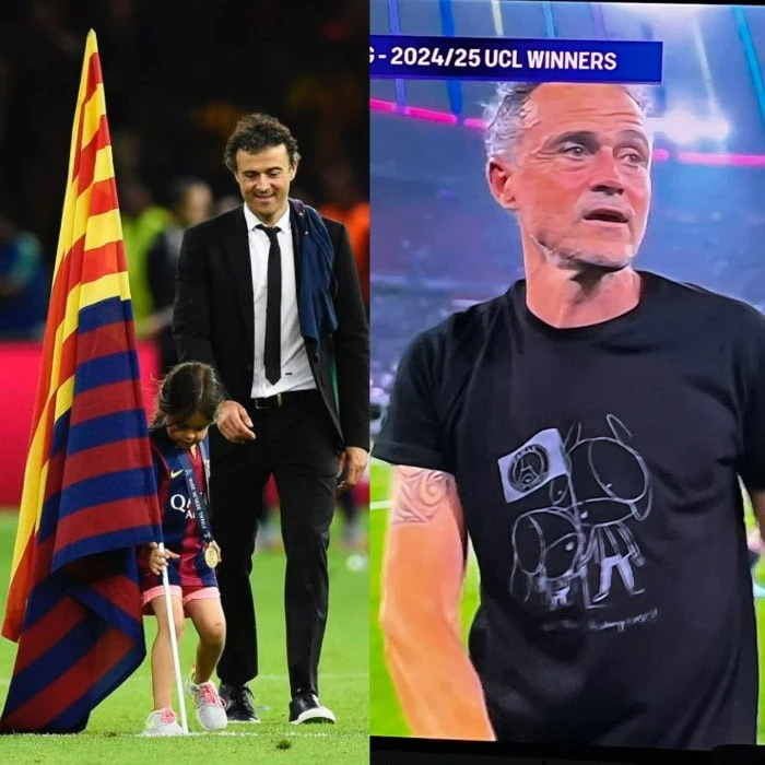 به محض به صدا درآمدن سوت پایان بازی، انریکه با یک لباس متفاوت وارد زمین شد، لباسی که تصویر انریکه با دخترش شانا پس از قهرمانی در لیگ قهرمانان اروپا با بارسلونا نقش بسته بود.