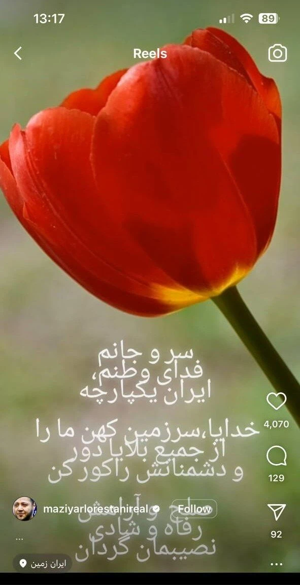 پست مازیار لرستانی درباره ایران