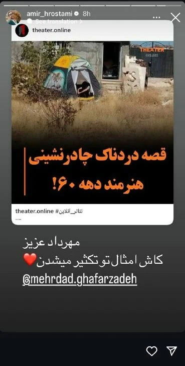 بازیگر دهه شصت چادرنشین شد