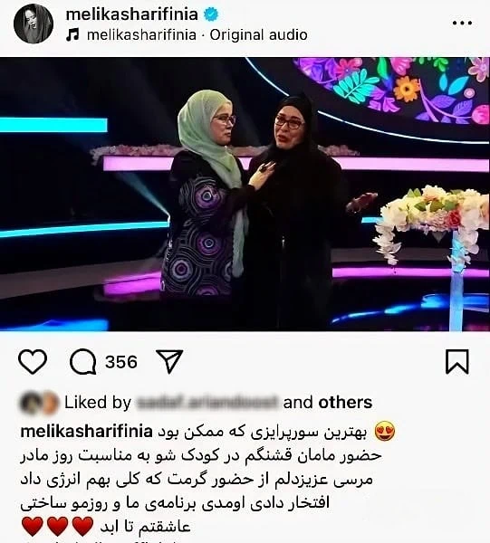 ملیکا شریفی نیا با انتشار ویدیویی از حضور مادرش در برنامه کودک شو و لحظه غافلگیریش نوشت: