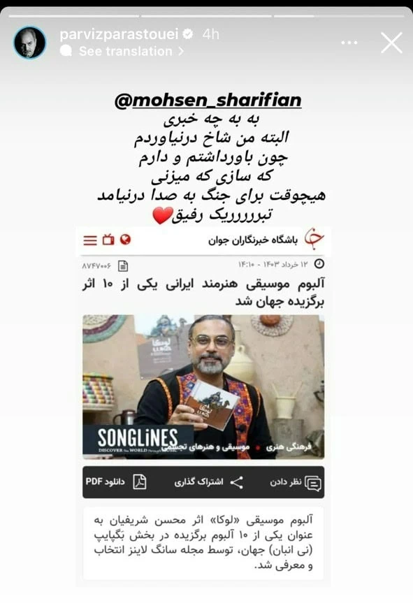 خبری از محسن شیریفیان صداتو که پرویز پرستویی را به وجد آورد