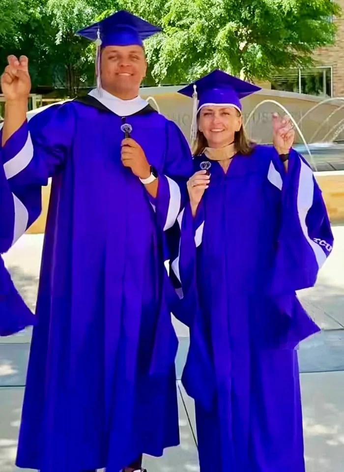 عکس مادر و پسری که در این بخش از نمناک مشاهده می کنید، مربوط به همین ماجراست و پس از مراسم فارغالتحصیلی همزمان از دانشگاه تگزاس کریستین در مقطع کارشناسی ارشد ثبت شده است.