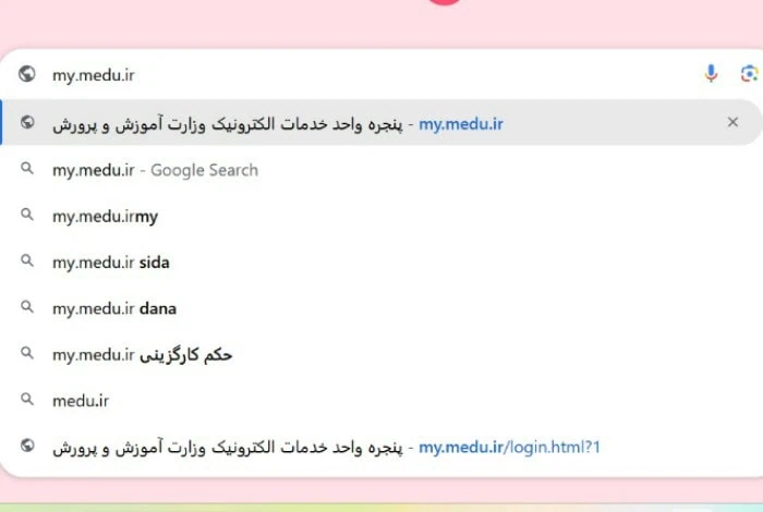 - آدرس my.medu.ir را در مرورگر سرچ کنید.