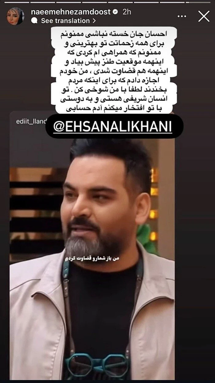 استوری نعیمه نظام دوست برای احسان علیخانی