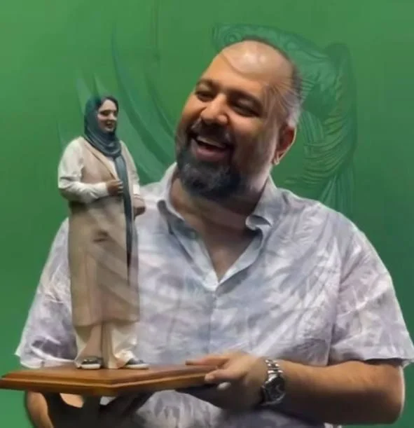 واکنش علی اوجی با دیدن مجسمه همسرش نرگس محمدی