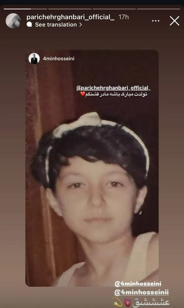 پریچهر قنبری به انتشار تبریک تولد از سوی پسرش با استیکر قلب و کلمه عشششق واکنش نشان داد.