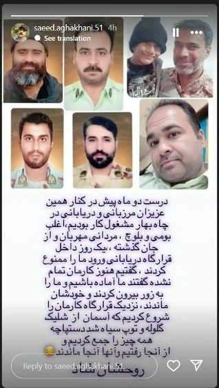 درست دو ماه پیش در کنار همین عزیزان مرزبانی و دریابانی در چاه بهار مشغول کار بودیم، اغلب بومی و بلوچ، مردانی مهربان و از جان گذشته،یک روز داخل قرارگاه دریابانی ورود ما را ممنوع کردند، گفتیم هنوز کارمان تمام نشده گفتند ما آماده باشیم و ما را به زور بیرون کردند و خودشان ماندند، نزدیک قرارگاه کارمان را شروع کردیم که آسمان از شلیک گلوله و توپ سیاه شد دستپاچه همه چیز را جمع کردیم و از آنجا رفتیم و آنها آنجا ماندند.