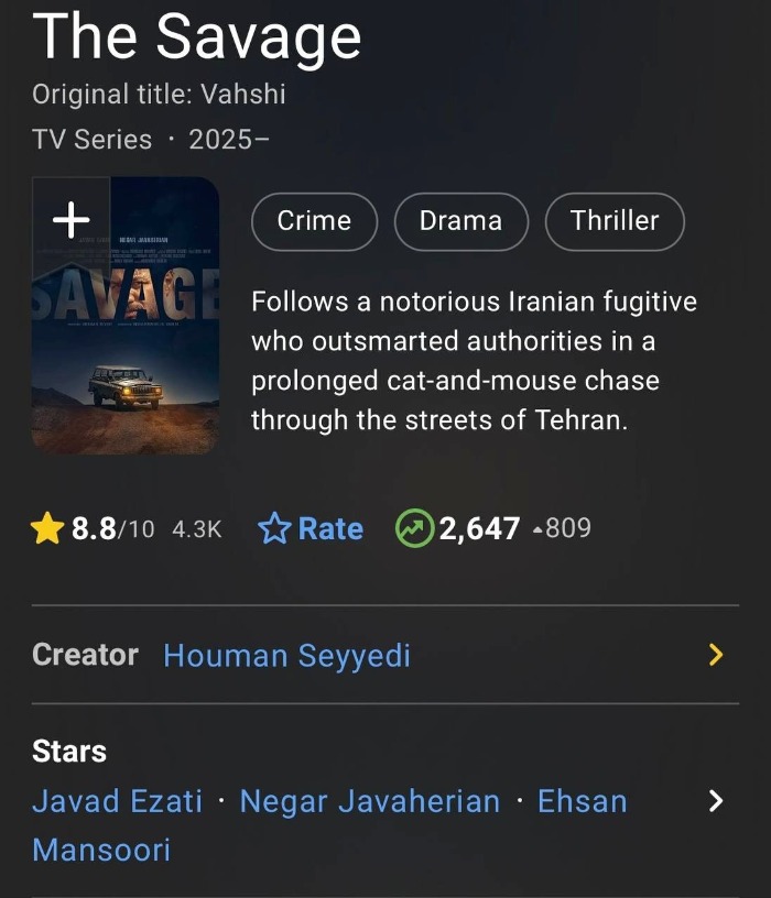 امتیاز سریال وحشی در IMDb نزدیک 9 شد