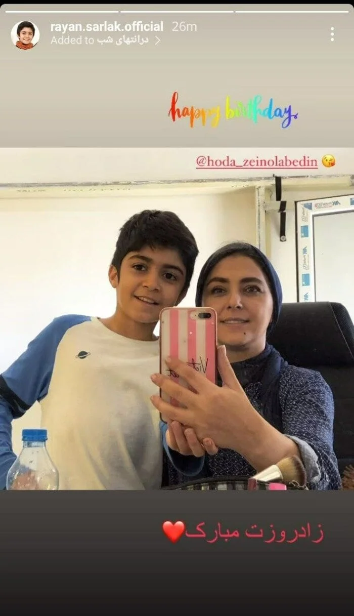رایان سرلک کاوه سریال زیرخاکی به مناسبت تولد هدی زین العابدین بازیگر سینما و تلویزیون عکسی دونفره را در صفحه اینستاگرامش استوری کرد و به خانم بازیگر تولد 35 سالگیش را تبریک گفت. در ادامه این بخش از نمناک استوری تبریک تولد هدی زین العابدین در صفحه رایان سرلک را مشاهده می کنید.