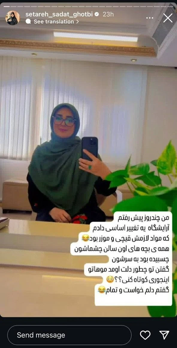 ستاره سادات قطبی از آرایشگاه رفتن خود گفت