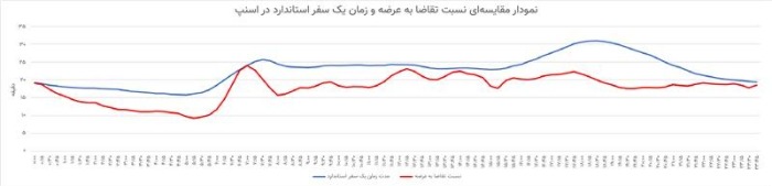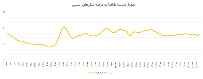 تحلیل نسبت تقاضا به عرضه نشان میدهد که مانند سال گذشته، نرخ تقاضا در ساعات ابتدایی روز سریعتر از عصر افزایش مییابد، اما در ساعات پرتردد عصر مدتزمان صرف شده در ترافیک بیشتر است. به این معنی که عامل اصلی نوسان قیمتی سفرها در ساعات صبح به نسبت تقاضا به عرضه و در ساعات عصر بیشتر به حجم بالای ترافیک برمیگردد.