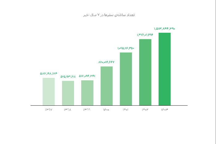 - پُرسفرترین کاربر مسافر غیر سازمانی ۳٬۵۴۸ سفر ثبت کرده است.