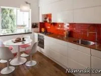 دکوراسیون آشپزخانه با کابینت مشکی باشکوه, متفاوت و مدرن است. رنگی مشکی با ترکیب رنگ های سفید و قرمز در آشپزخانه معجزه میکند.