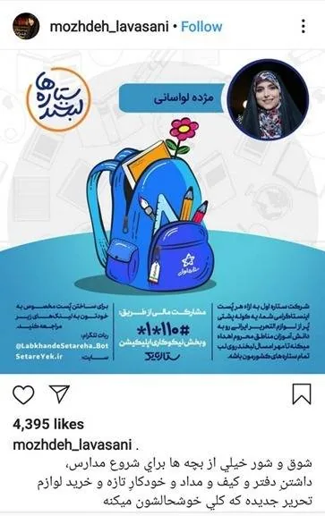 این کار باعث می شود افراد بیشتری به این کمپین بپیوندند تا بتوانیم به دانش آموزان بیشتری کمک کنیم. در نهایت شرکت ستاره اول به ازای هر پست منتشر شده یک کوله پشتی پر از لوازم التحریر با کیفیت و 100% ایرانی را از طرف شخص شما به یک کودک نیازمند اهدا می کند؛ حالا شما هم دلیل لبخند آن کودک شده اید و هم کارگران زحمت کش ایرانی! یعنی یک تیر و هزاران نشان! راستی هنگام انتشار پست حتما ، پیج setare_aval@ را تگ کرده و از هشتگ #لبخند_ستاره _ها هم استفاده کنید تا بتوانیم پست شما رو پیدا کنیم.